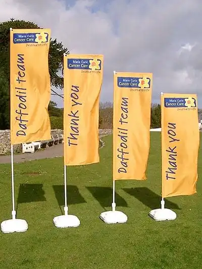 Marie Curie Flags Marie Curie use Sailflags for effective branding throughout the UK at different events. The system is easy to assemble, manageable for volunteers and provides high visual impact. The Sailflags are also used at the London Marathon to…
