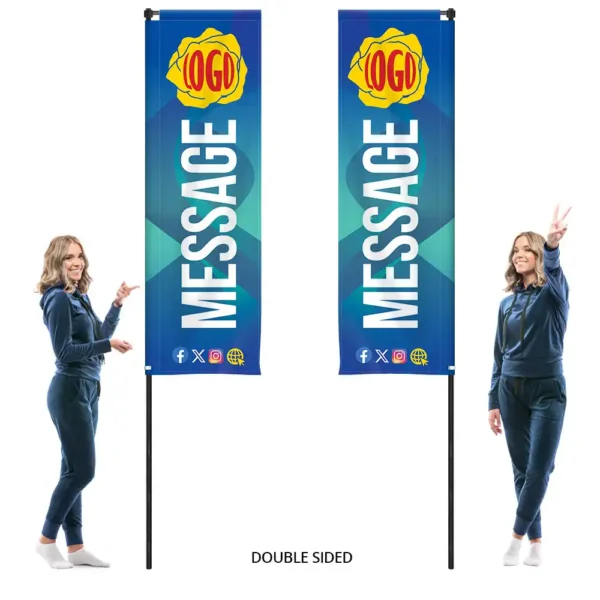 Banner shaped in design, the flag moves naturally in a breeze or wind, attracting passing traffic well. Traditional brands and businesses tend to use this shape too.