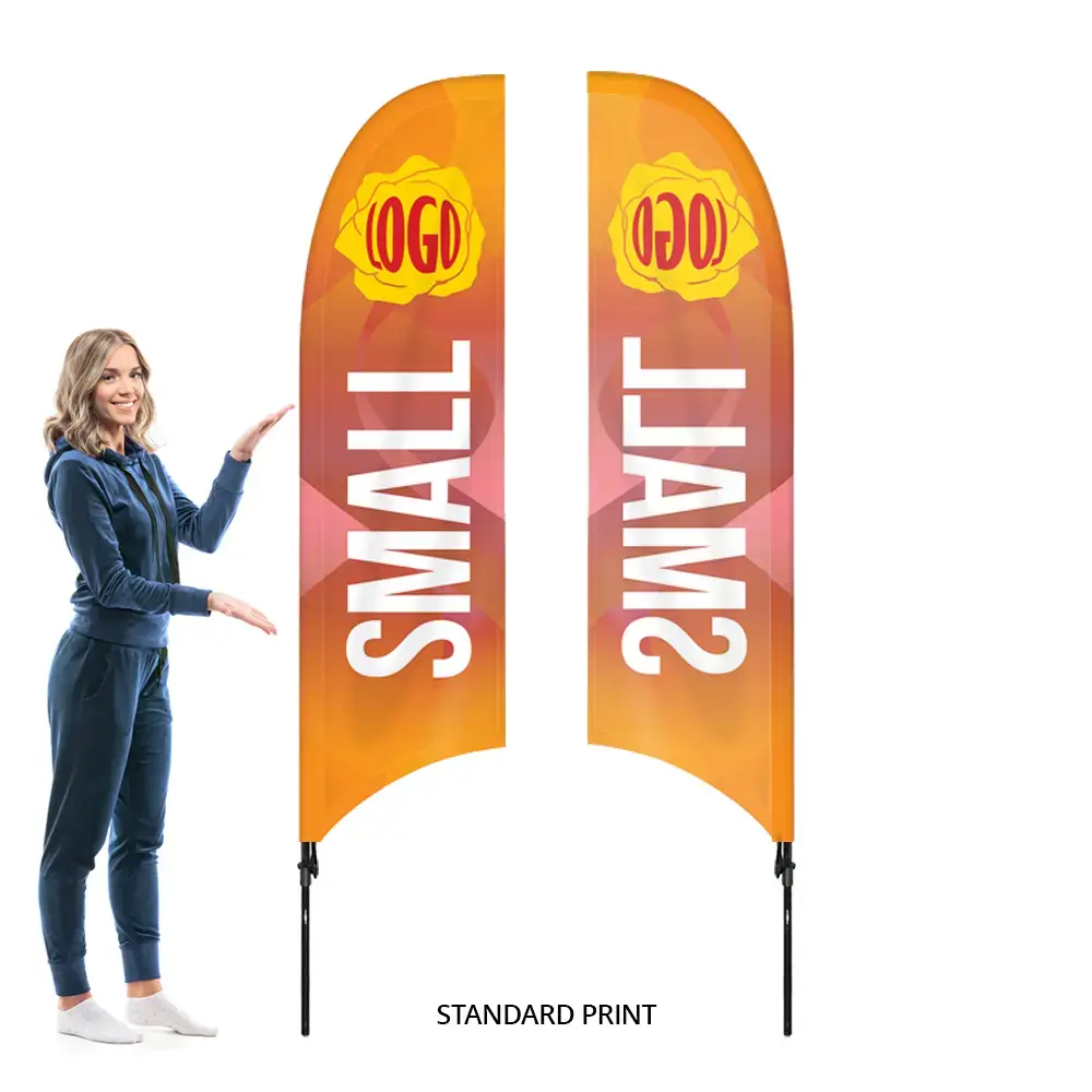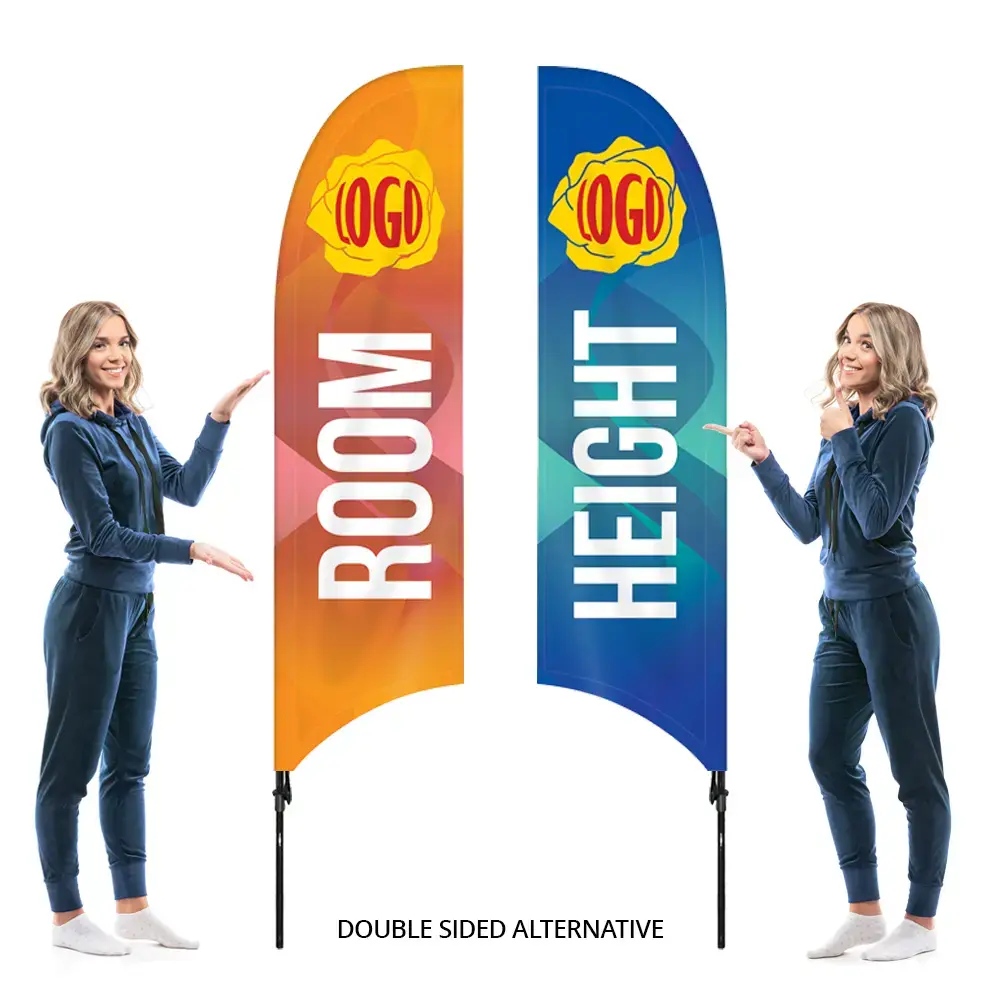 The 2.4m feather flag is an excellent choice for environments where space is limited but impact is still required. It is the ideal height for normal indoor ceilings, making it perfect for office spaces, showrooms, exhibition halls, and event venues. Outdoors, it provides high visibility while remaining easy to transport and set up, ensuring your brand stands out without taking up excessive space.