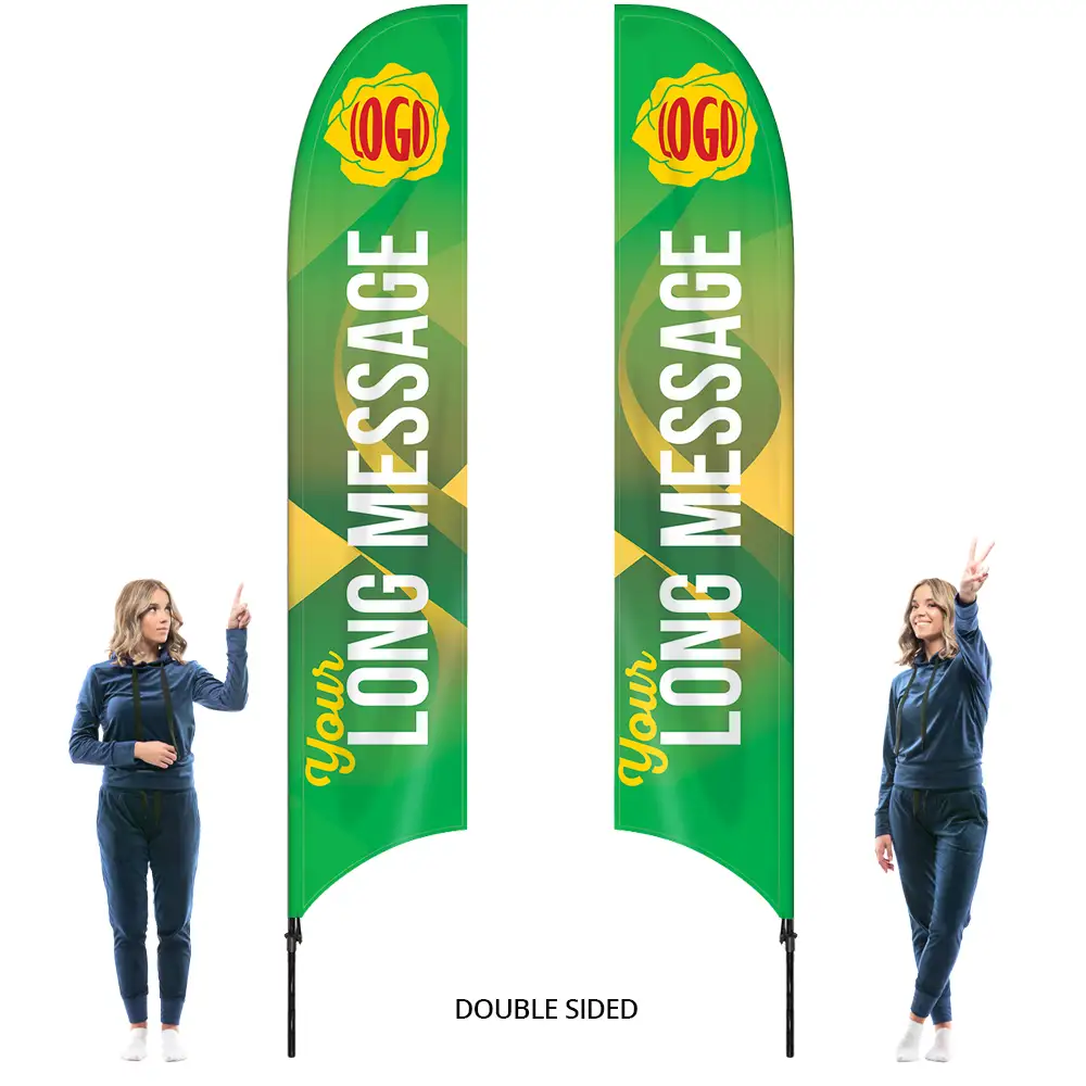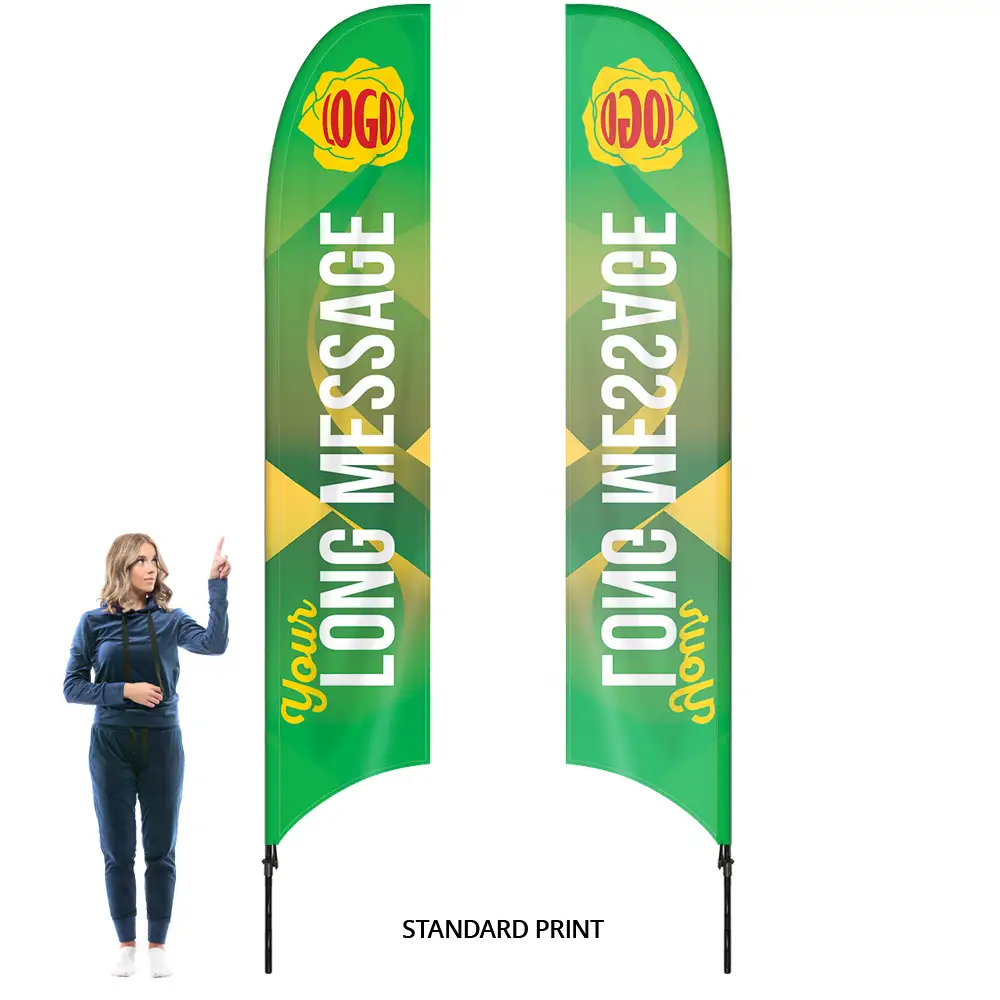 The feather design is sleek and modern, catching the wind to create a dynamic display that naturally draws the eye. This makes it an excellent choice for events where grabbing attention is key, whether you’re showcasing a new product or promoting your services.
