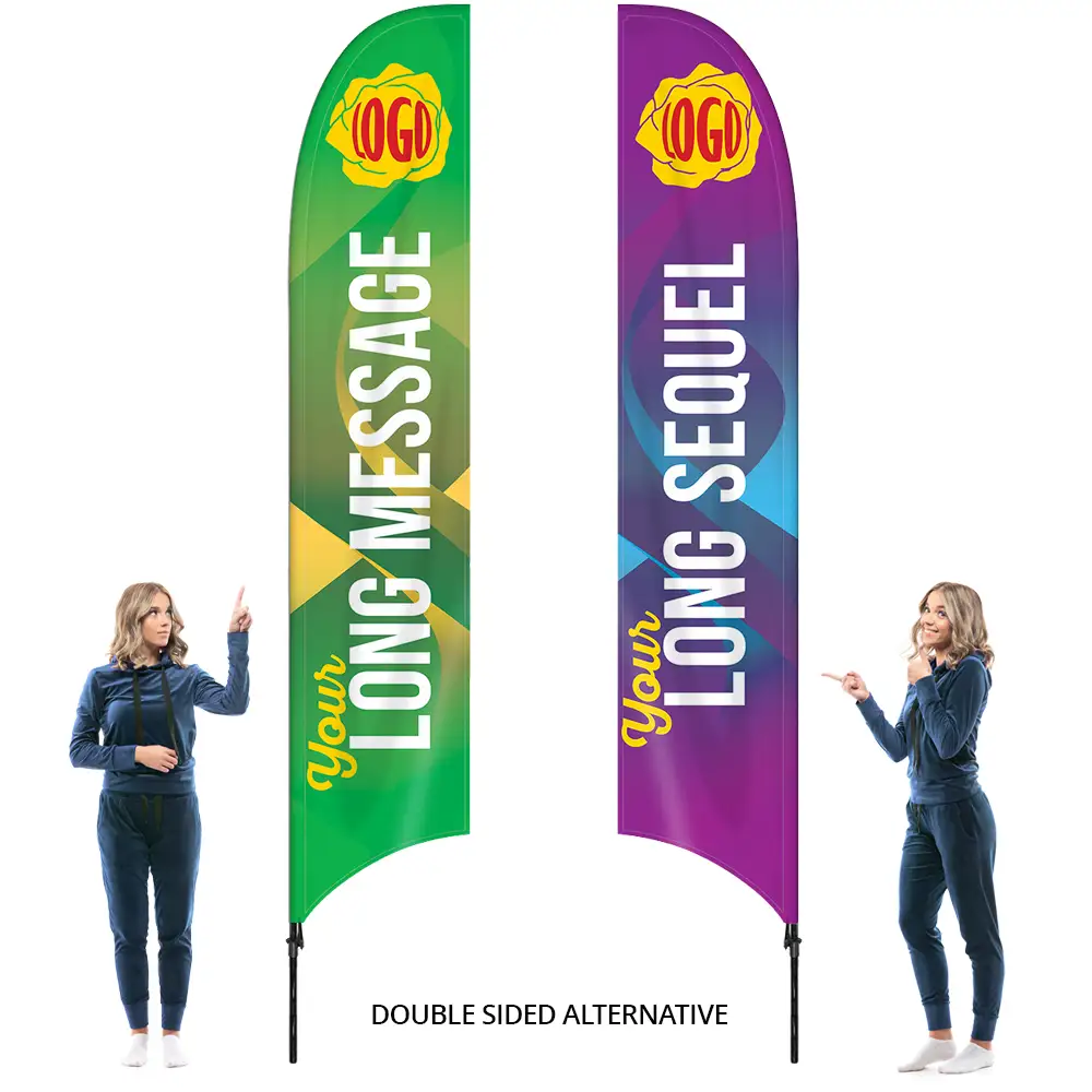 The 4.2m Feather Flag from Sailflags is a standout promotional tool, perfect for outdoor shows, car exhibitions, and activity centres. With its slightly larger size, it’s designed to grab attention and showcase your brand in high-traffic areas, ensuring your message stands out in any setting.