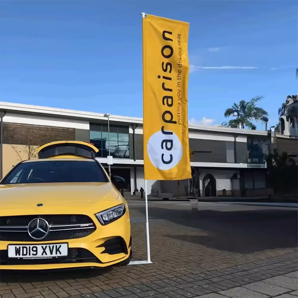 Enhance your automotive business with Sailflags' custom-printed Forecourt Flags, available in Standard, Air Mesh, and Tough Tex fabrics. Designed for car dealerships, garages, and vehicle traders, these durable flags ensure vibrant, eye-catching advertising in any weather. Customisable designs, free design service, and fast UK delivery available! Don’t forget—we’re here to help if you get stuck!