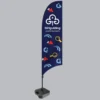 A water-filled flag base provides additional stability for outdoor displays on pavements or event spaces, while a drive-over base uses the weight of a vehicle tyre to hold the flag securely in place, making it ideal for busy outdoor events.