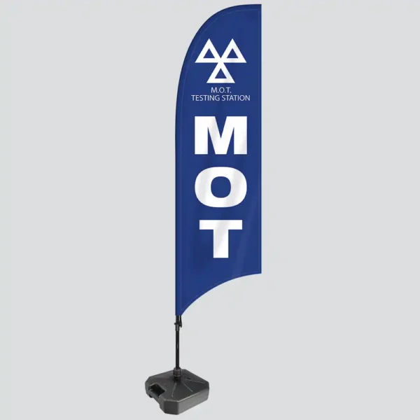These lightweight and portable flags are also easy to move and reposition as needed, making them adaptable to various locations or events. With simple setup and dismantling, they are easy to manage, allowing you to change up your advertising or bring the flag indoors at night to maximise its lifespan. This flexibility makes our MOT flags an excellent investment for garages or forecourts with changing needs or for those who participate in community events and fairs.