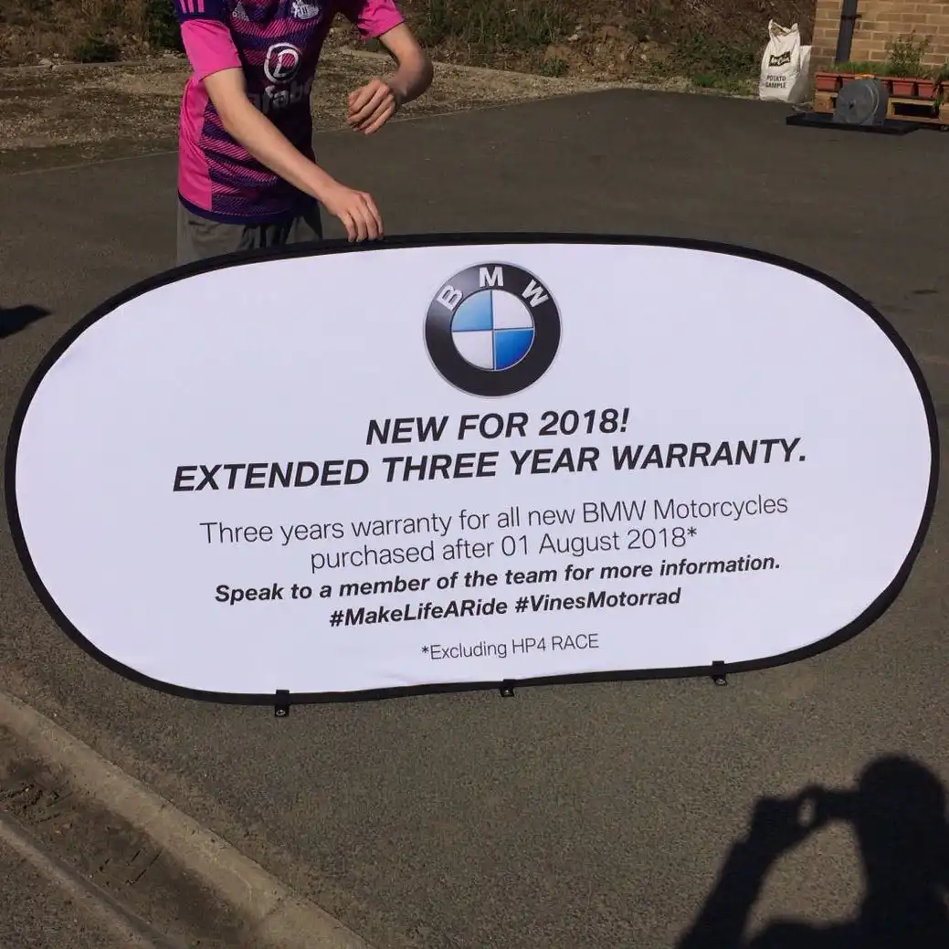 Each banner features two large fabric panels, printed single-sided for double the visibility. Produced on durable 220gsm polyester using advanced dye-sublimation printing, the colours remain bold, sharp and fade-resistant, ensuring your brand stands out in any environment.