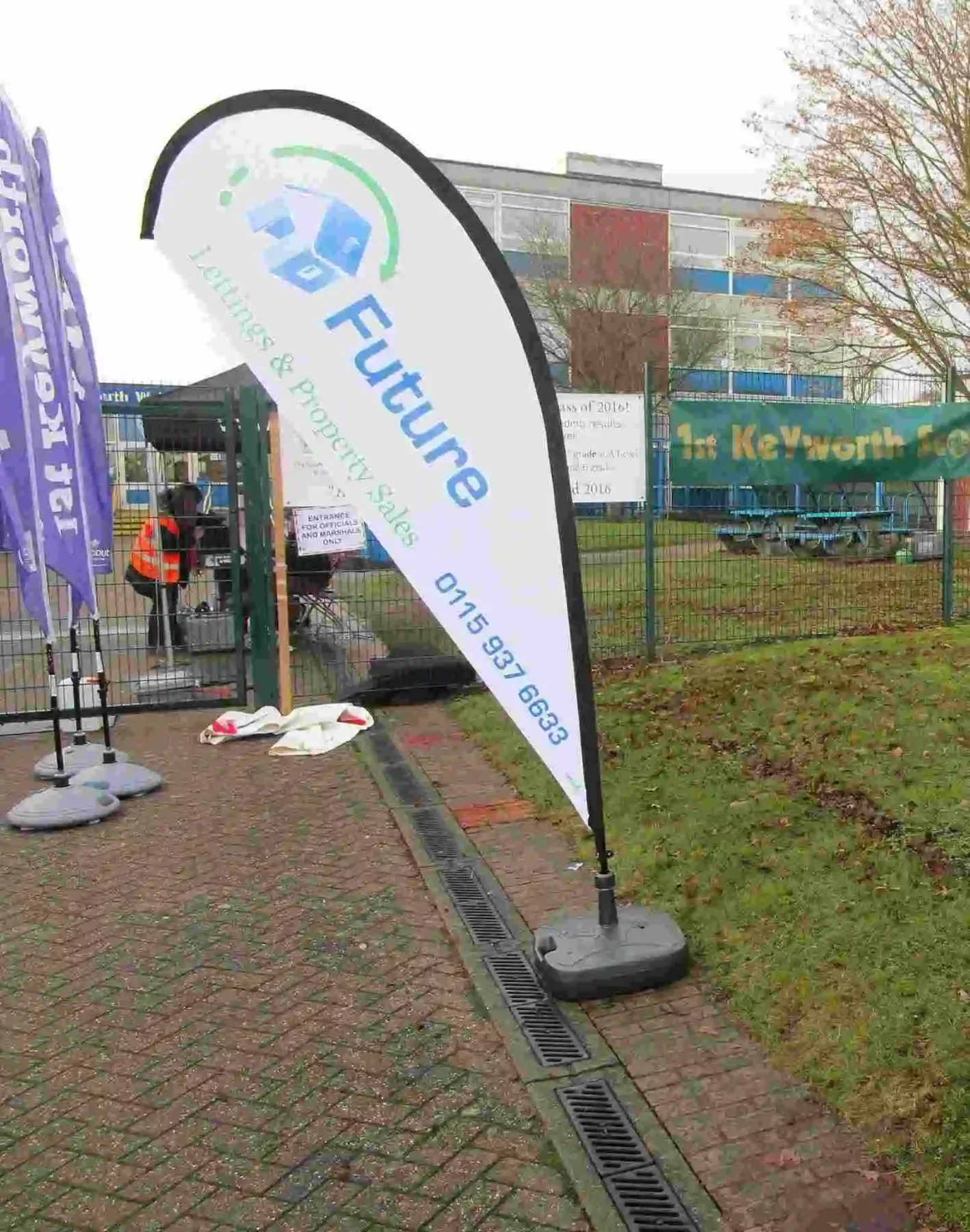 The 2.7m Teardrop Flag is our bestselling size, offering the perfect balance between visibility and practicality. It provides a strong visual presence without the footprint or height limitations of larger flags, making it a versatile choice for a wide range of environments.